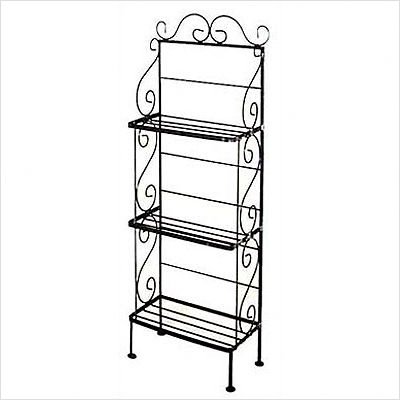 18" Wrought Iron Small 3-Shelf Bakers Rack Metal Finish: Satin Black, Option: Without Brass Tips Reviews