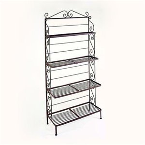 Metal Finish:Cobblestone, Tips & Trim:Brass Tips, Size:24? Wide This French bakers rack is available in 4 different widths and features staggered or graduated depth shelves. The entire rack is solid steel. All of the shelves are also made of solid steel wire construction. Non-marring foot glides protect your floors. No glass option is available. Brass tip accents are available
